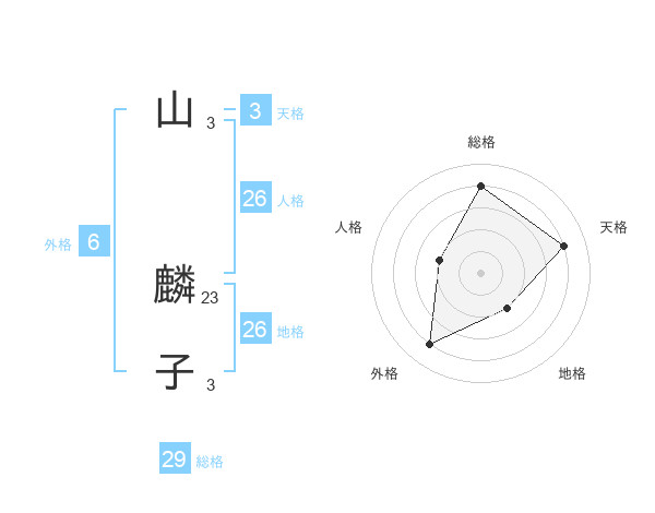 山 麟子さんの総格は29画の4点!