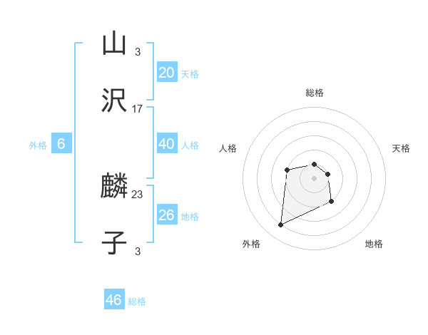 山沢 麟子さんの天格は20画の1点!