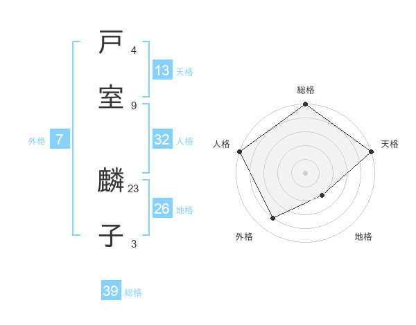 戸室 麟子さんの総格は39画の5点!