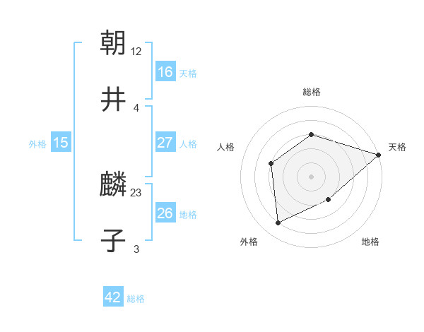 朝井 麟子さんの総格は42画の3点