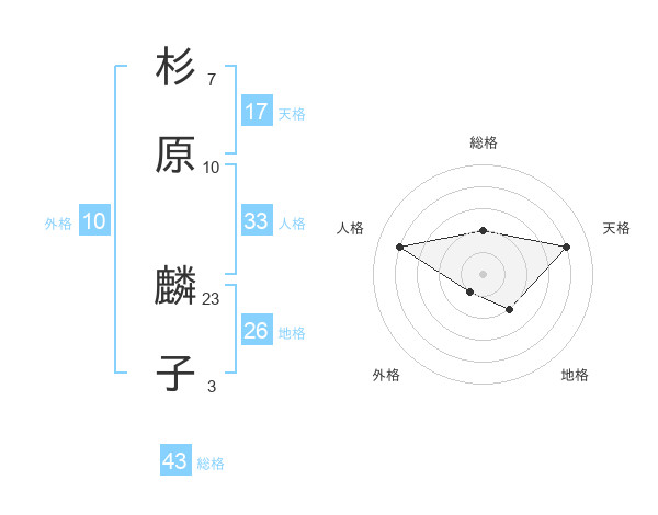 杉原 麟子さんの天格は17画の4点!