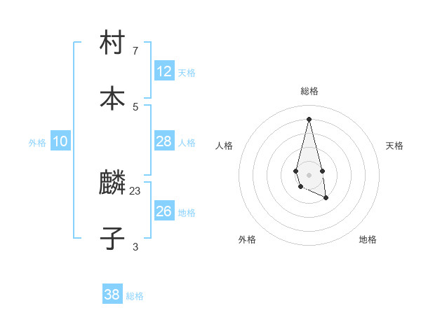 村本 麟子さんの総格は38画の4点!