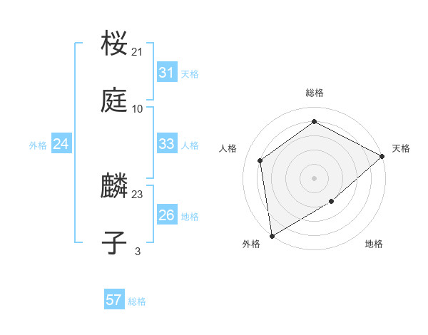 桜庭 麟子さんの総格は57画の4点!