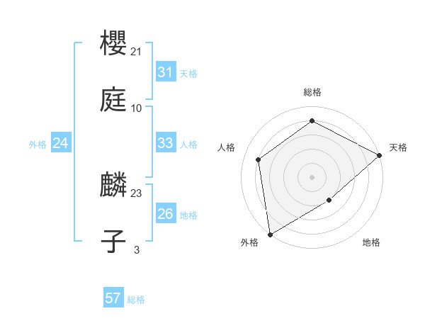 櫻庭 麟子さんの天格は31画の5点!