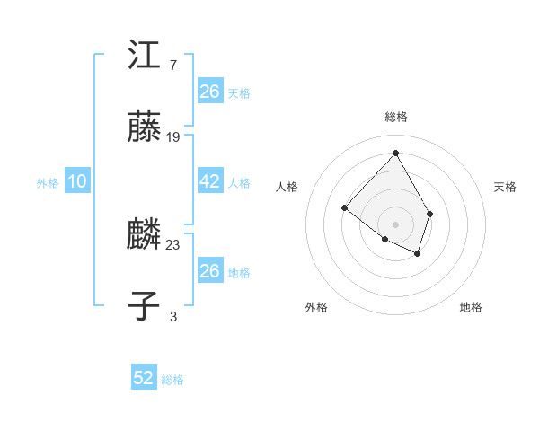 江藤 麟子さんの総格は52画の4点!