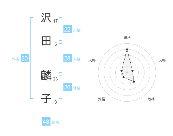 沢田 麟子さんを姓名の画数から五運を鑑定