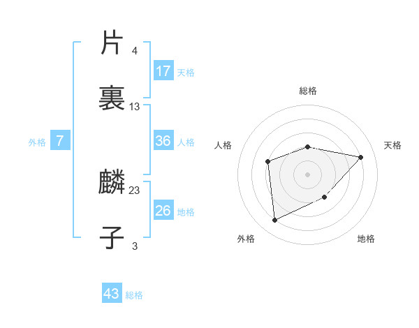 片裏 麟子さんを姓名の画数から五運を鑑定
