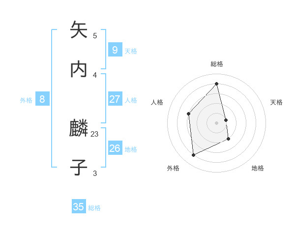 矢内 麟子さんの天格は9画の1点!