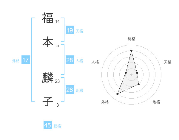 福本 麟子さんの総格は45画の4点!