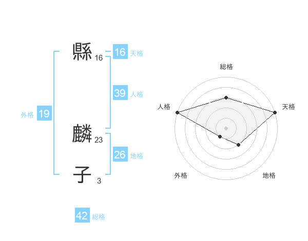 縣 麟子さんの天格は16画の5点!