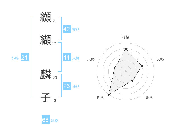 纐纈 麟子さんの総格は68画の4点