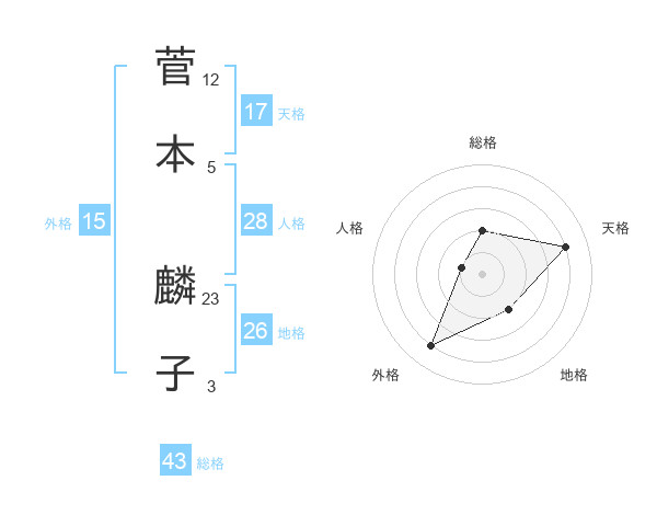 菅本 麟子さんの天格は17画の4点!
