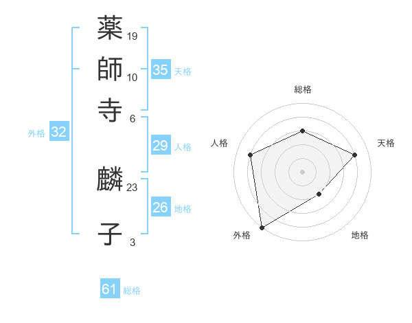 薬師寺 麟子さんの総格は61画の3点!