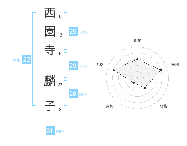 西園寺 麟子さんを姓名の画数から五運を鑑定