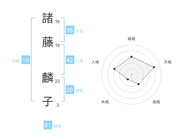諸藤 麟子さんの総格は61画の3点!