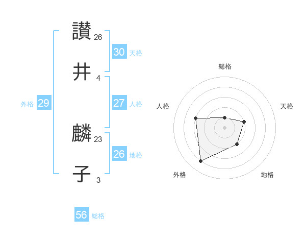 讃井 麟子さんの天格は30画の2点!