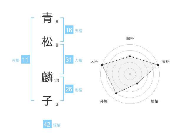 青松 麟子さんの天格は16画の5点!
