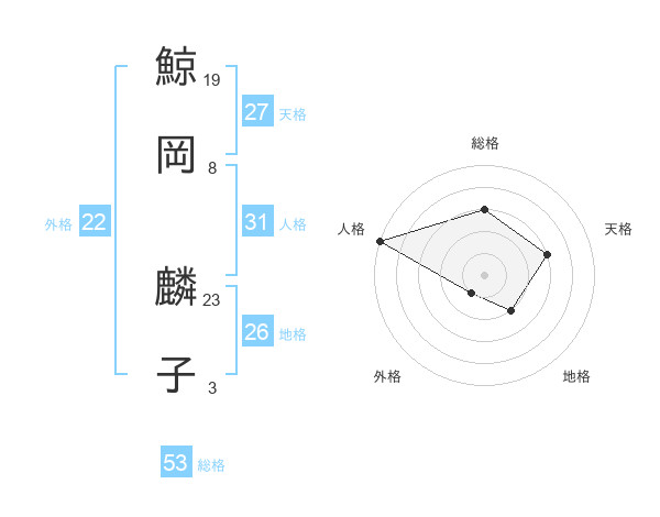 鯨岡 麟子さんを姓名の画数から五運を鑑定