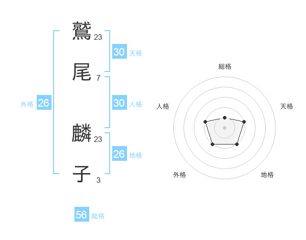 鷲尾 麟子さんを姓名の画数から五運を鑑定