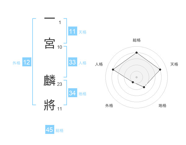 一宮 麟將さんの総格は45画の4点!