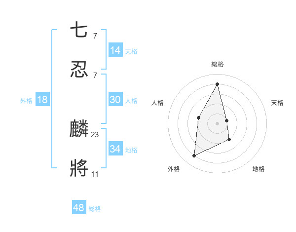 七忍 麟將さんを姓名の画数から五運を鑑定