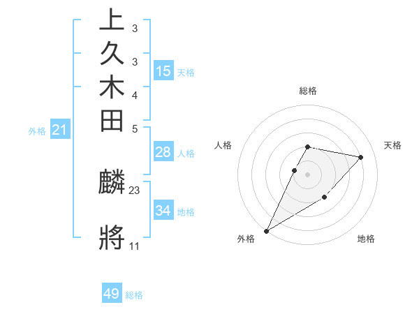 上久木田 麟將さんを姓名の画数から五運を鑑定