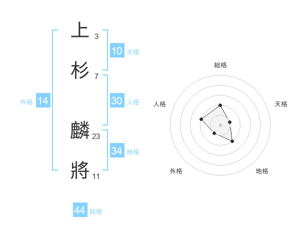上杉 麟將さんを姓名の画数から五運を鑑定