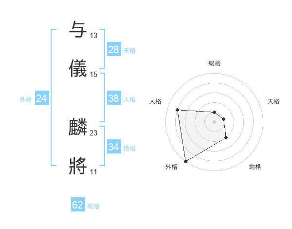 与儀 麟將さんを姓名の画数から五運を鑑定