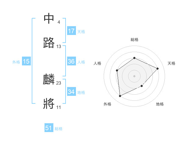 中路 麟將さんの総格は51画の3点!