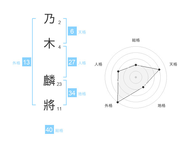 乃木 麟將さんの総格は40画の2点!