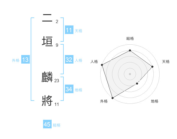 二垣 麟將さんの総格は45画の4点!