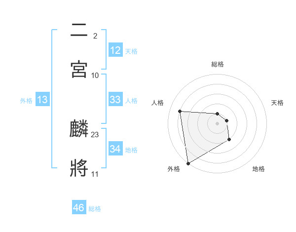二宮 麟將さんの総格は46画の1点!