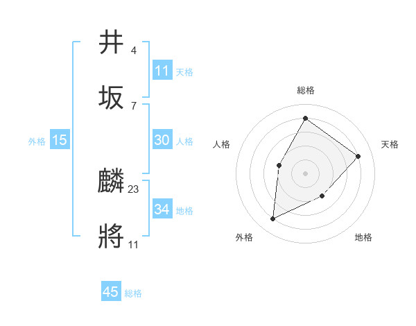 井坂 麟將さんの総格は45画の4点!