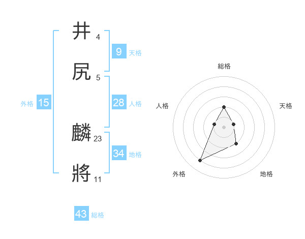 井尻 麟將さんの総格は43画の2点!