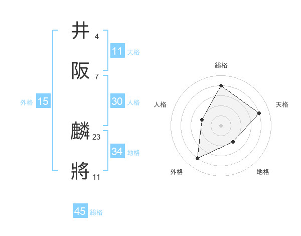 井阪 麟將さんを姓名の画数から五運を鑑定
