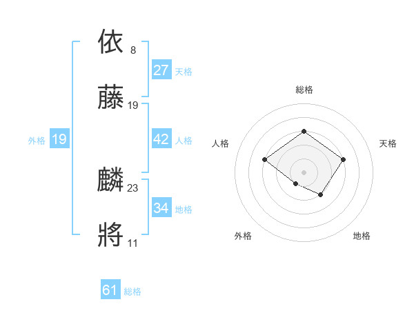 依藤 麟將さんの総格は61画の3点!