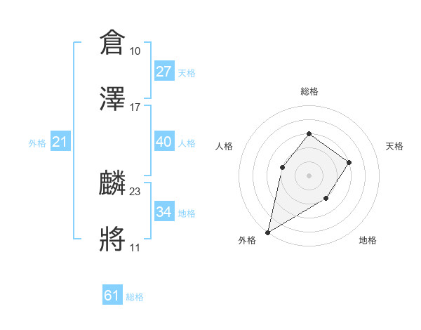 倉澤 麟將さんを姓名の画数から五運を鑑定