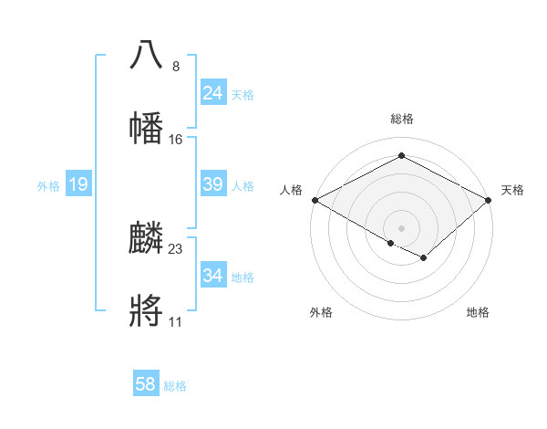 八幡 麟將さんを姓名の画数から五運を鑑定