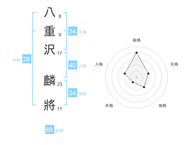 八重沢 麟將さんの総格は68画の4点!