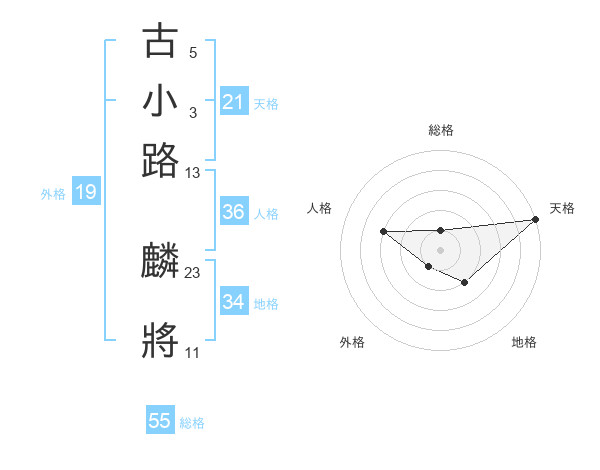 古小路 麟將さんを姓名の画数から五運を鑑定