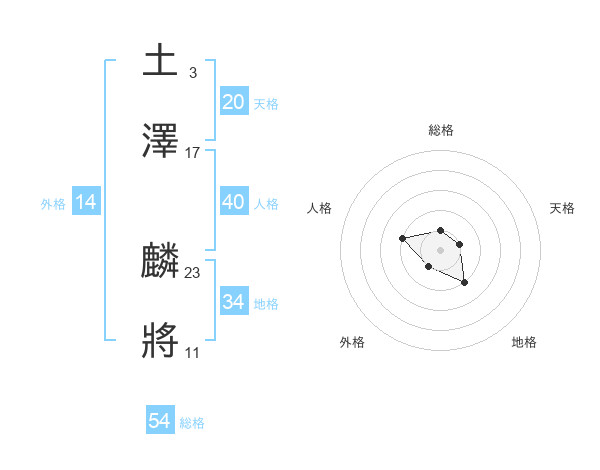 土澤 麟將さんを姓名の画数から五運を鑑定