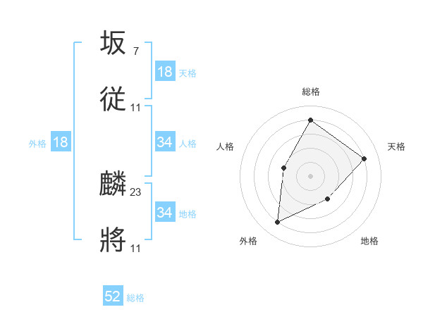 坂従 麟將さんを姓名の画数から五運を鑑定