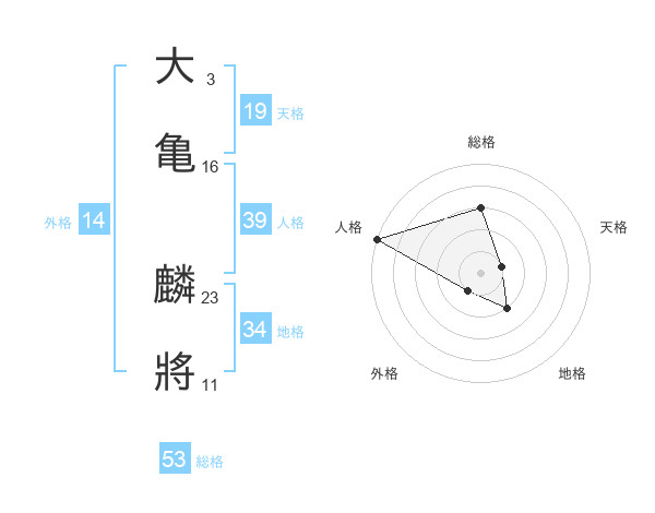 大亀 麟將さんの天格は19画の1点!