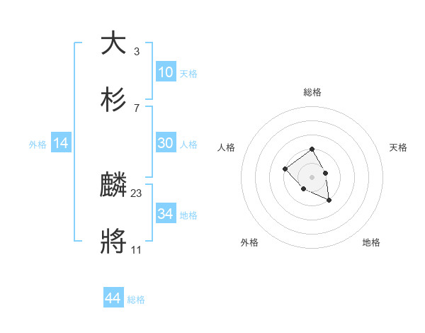 大杉 麟將さんの総格は44画の2点!