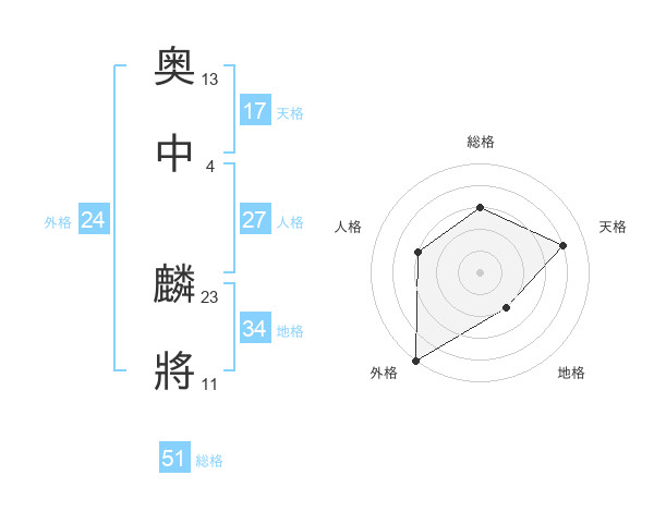 奥中 麟將さんを姓名の画数から五運を鑑定