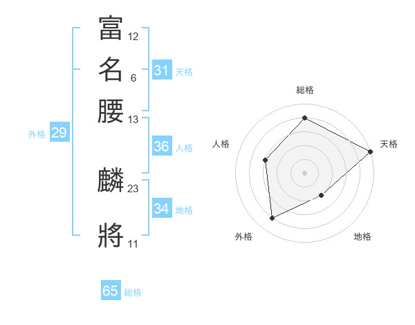 富名腰 麟將さんの総格は65画の4点!