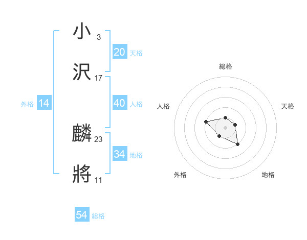 小沢 麟將さんを姓名の画数から五運を鑑定