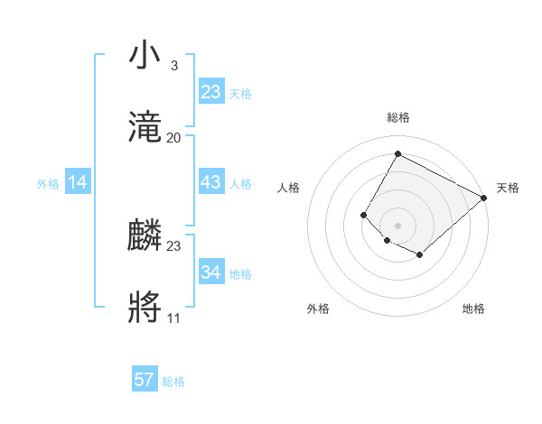 小滝 麟將さんを姓名の画数から五運を鑑定