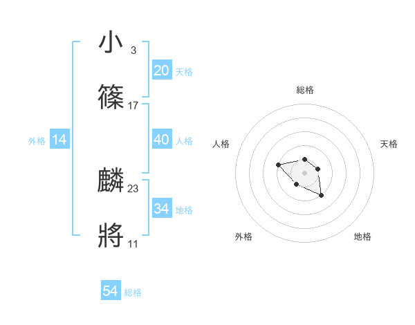 小篠 麟將さんの天格は20画の1点!