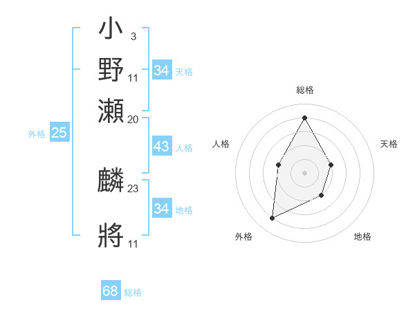 小野瀬 麟將さんを姓名の画数から五運を鑑定
